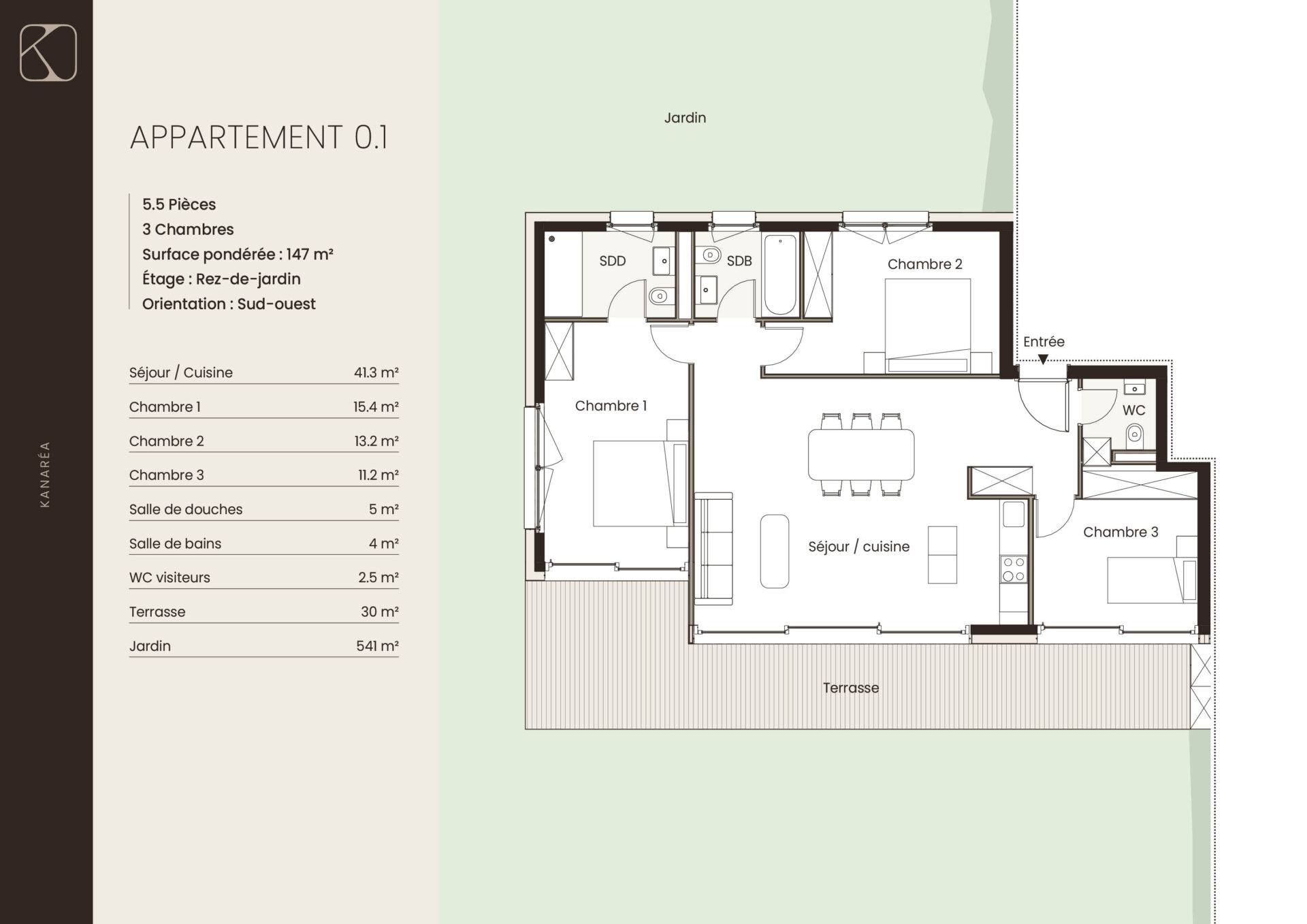 | 0.1 | Rez-de-jardin | 5.5 | 147 m2 | réservé | |||||||