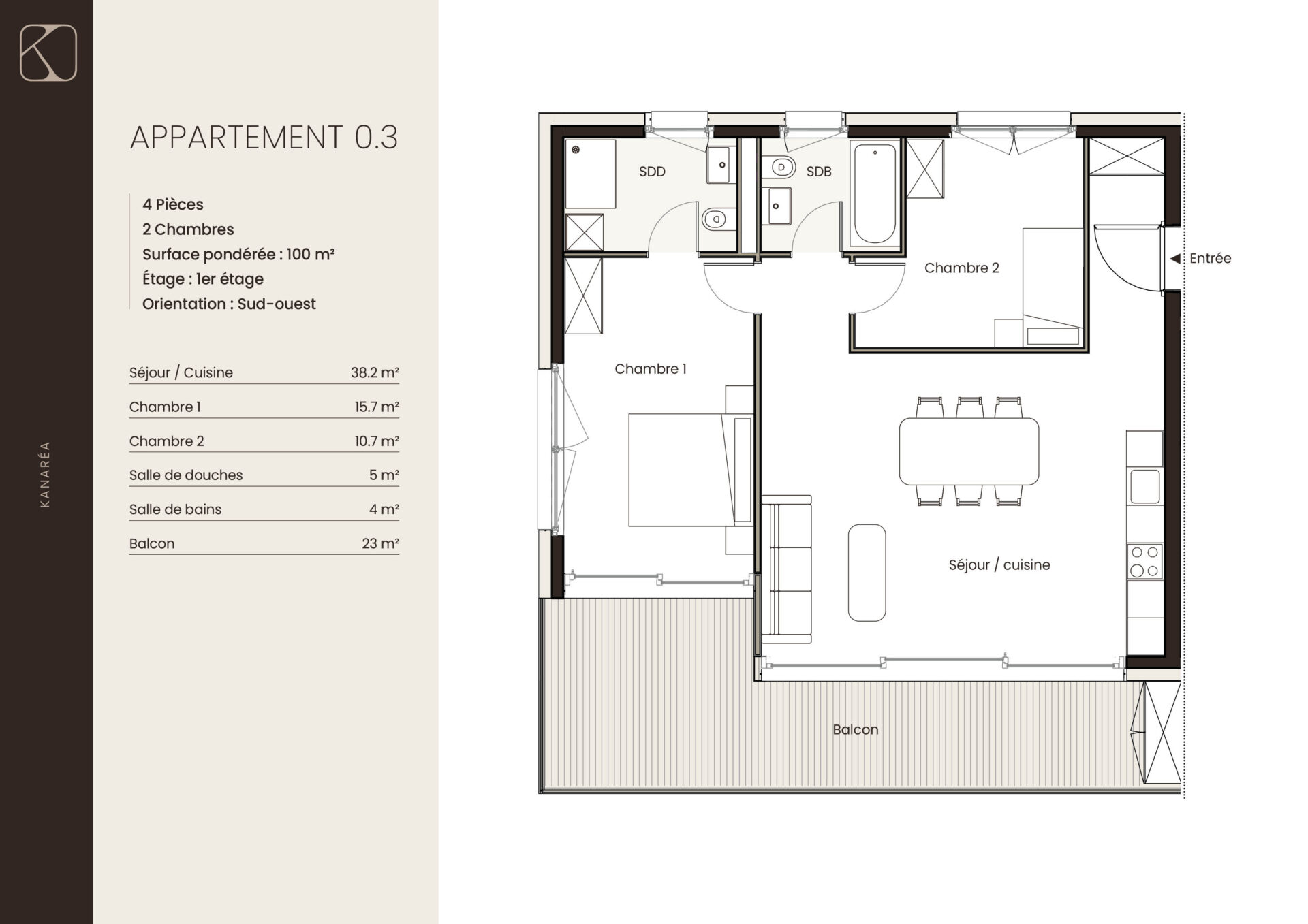 | 0.3 | 1er étage | 4 | 100 m2 | réservé | |||||||