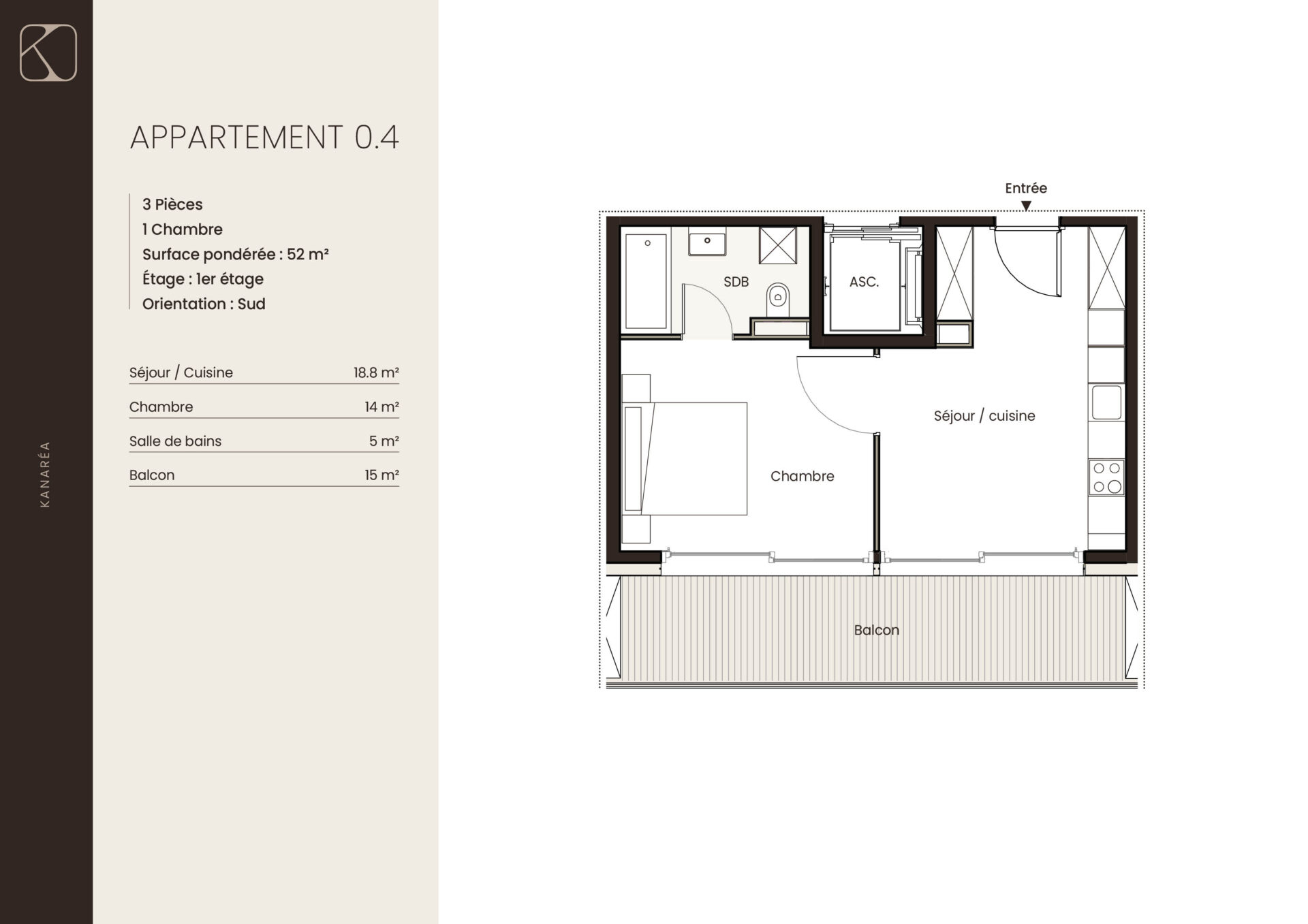 | 0.4 | 1er étage | 3 | 52 m2 | réservé | |||||||
