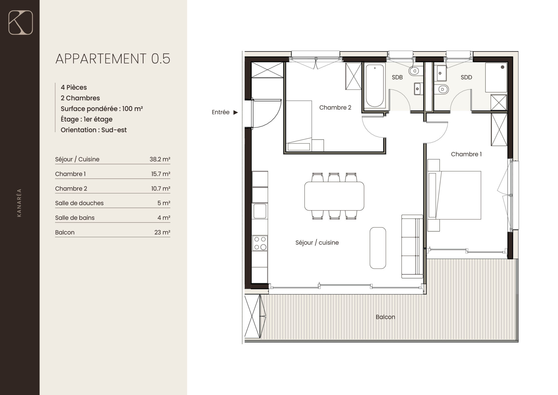 | 0.5 | 1er étage | 4 | 100 m2 | réservé | |||||||
