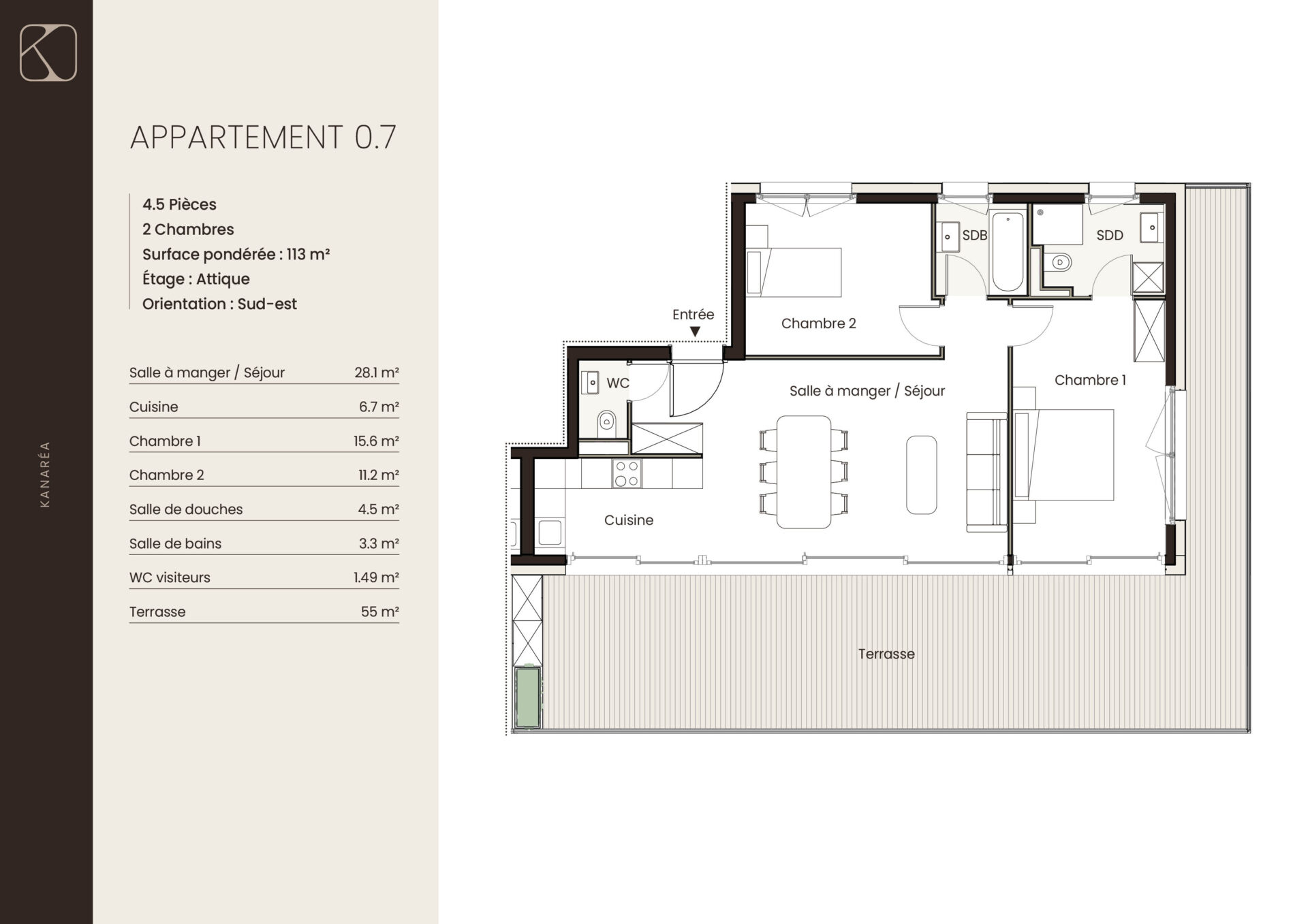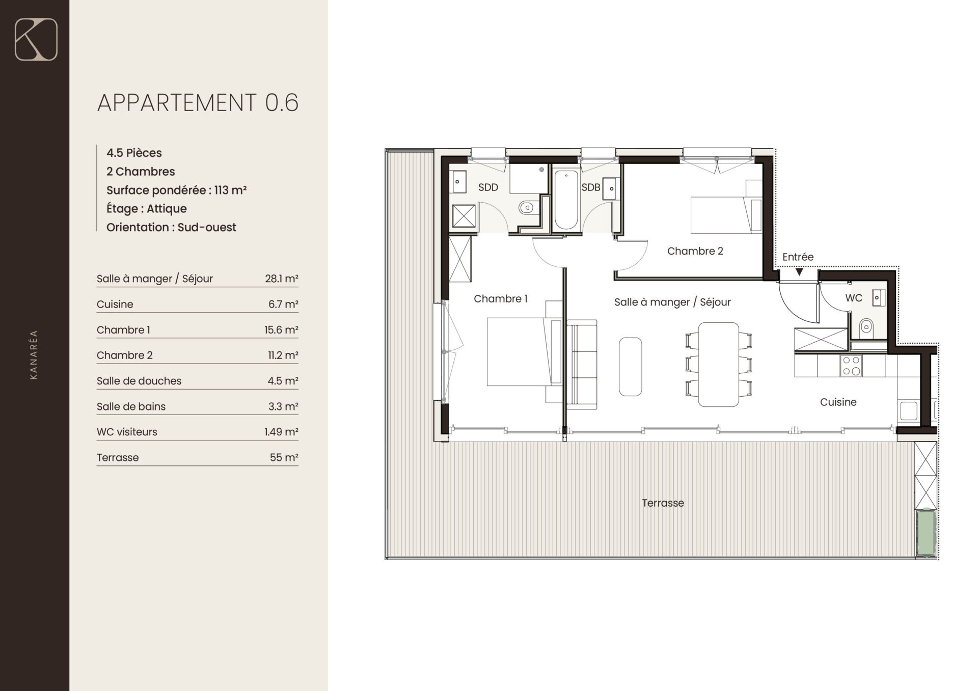 | 0.6 | Attique | 4.5 | 113 m2 | réservé | |||||||