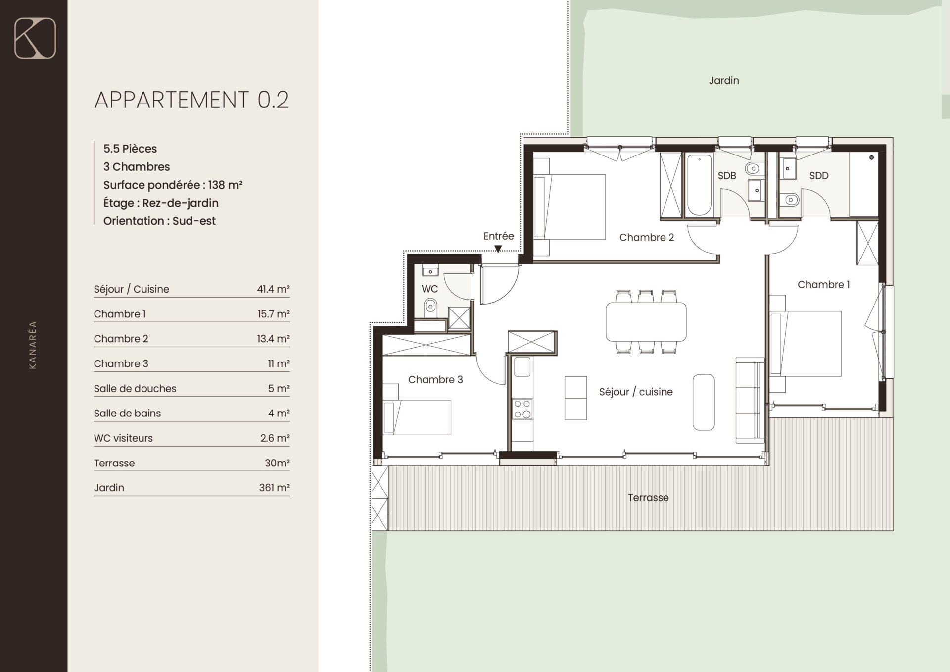 | 0.2 | Rez-de-jardin | 5.5 | 138 m2 | réservé | |||||||